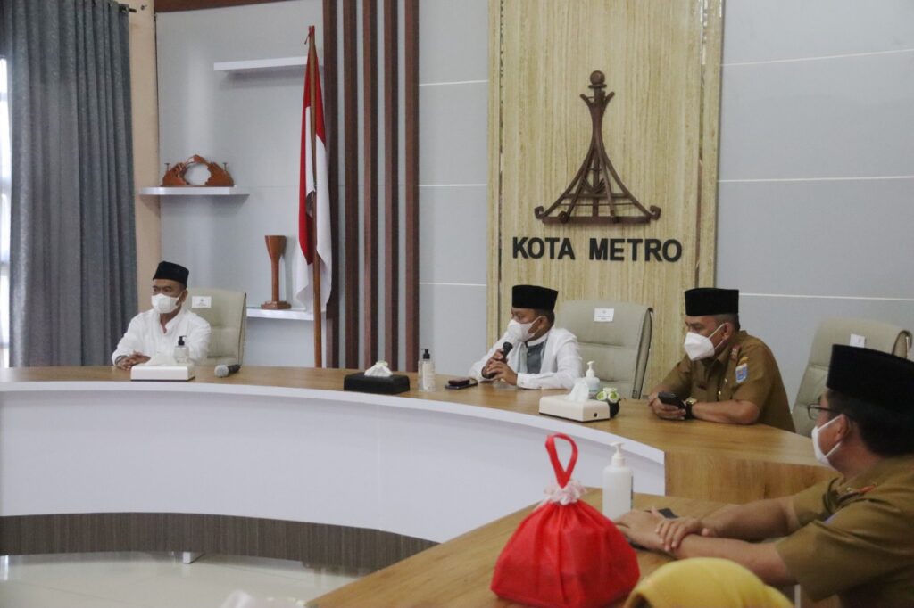 Pemerintah Kota (Pemkot) Metro melalui Via Zoom Meeting mengikuti Peringatan Nuzulul Qur’an 1443 Hijriah/ 2022 Masehi se- Provinsi Lampung, yang diadakan di Guest House Rumah Dinas Walikota, Senin 18/4/2022.