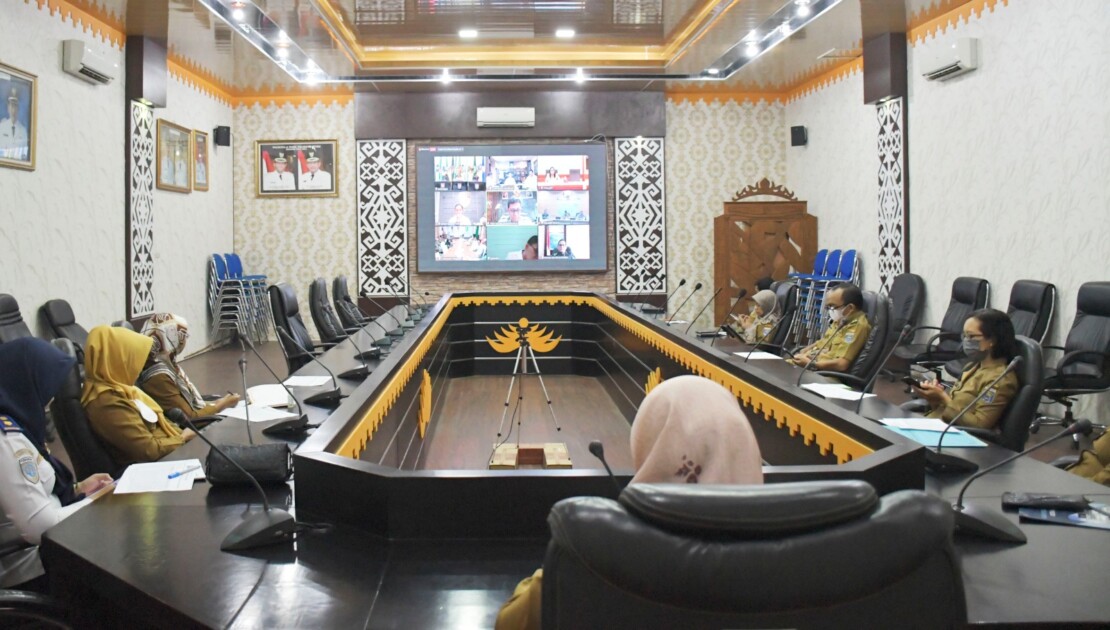 Pemerintah Kota Metro mengikuti Rapat Koordinasi (Rakor) Pengendalian Inflasi Tingkat Nasional dengan Kementerian Dalam Negeri (Kemendagri) secara virtual di OR Setda Kota Metro, Senin (10/04/2023).