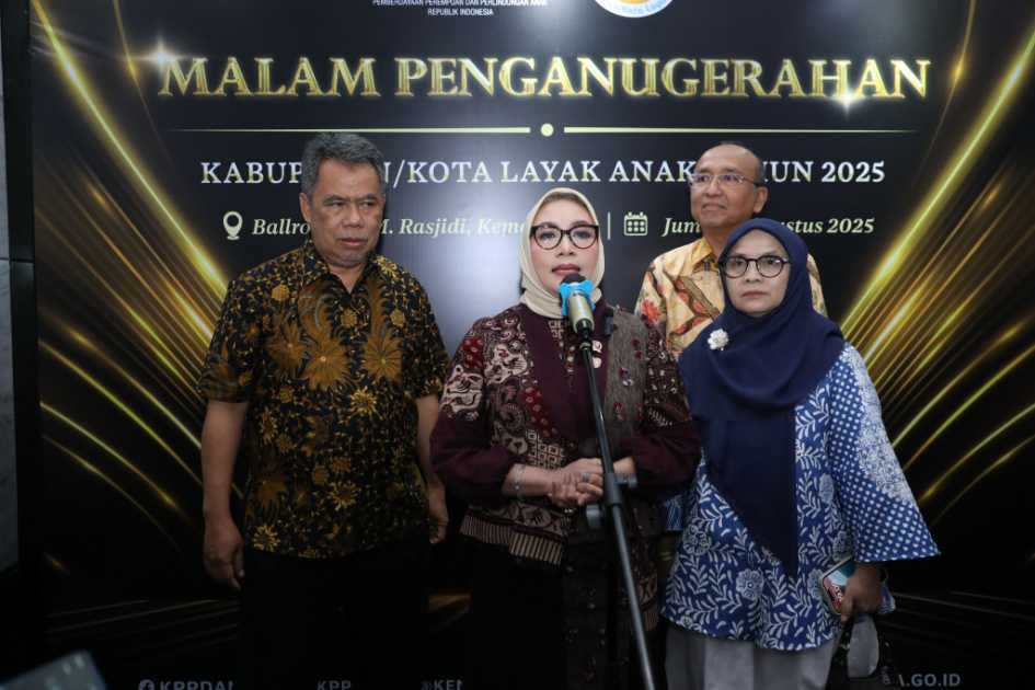 Sementara itu, Menteri Pemberdayaan Perempuan dan Perlindungan Anak (PPPA), Arifah Fauzi menyampaikan penghargaan Kabupaten/Kota Layak Anak merupakan bentuk apresiasi atas komitmen dan kesungguhan para kepala daerah beserta jajarannya dalam menciptakan lingkungan yang aman bagi anak.