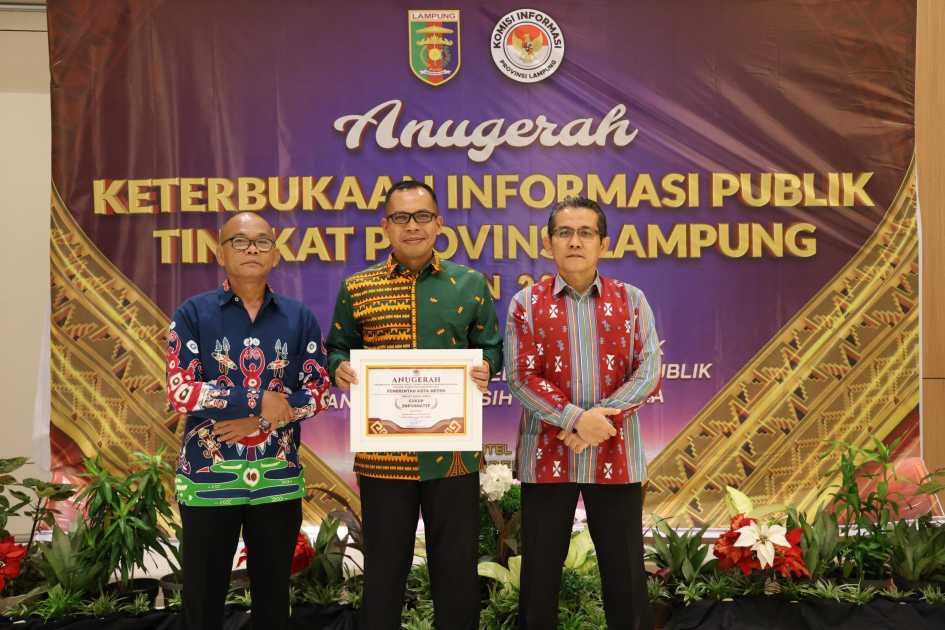 Pemerintah Kota Metro berhasil meraih penghargaan Anugerah Keterbukaan Informasi Publik Tingkat Provinsi Lampung Tahun 2024 yang diselenggarakan oleh Komisi Informasi Provinsi Lampung, di Hotel Novotel, Rabu (4/12/2024).