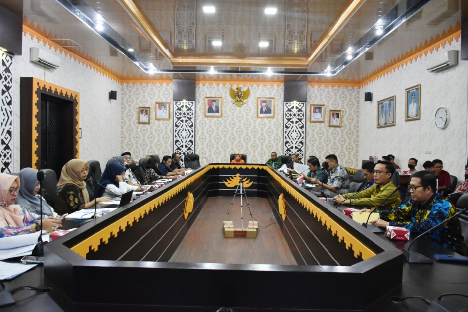 Pemerintah Kota Metro menggelar rapat terkait pembahasan 2 rancangan Peraturan Walikota, yaitu Rancangan Perwali tentang Integrasi Layanan Aplikasi dan Penyelenggaraan Sistem Pemerintahan Berbasis Elektronik (SPBE), berlangsung di OR Setda Kota Metro, Jumat (23/06/2023).