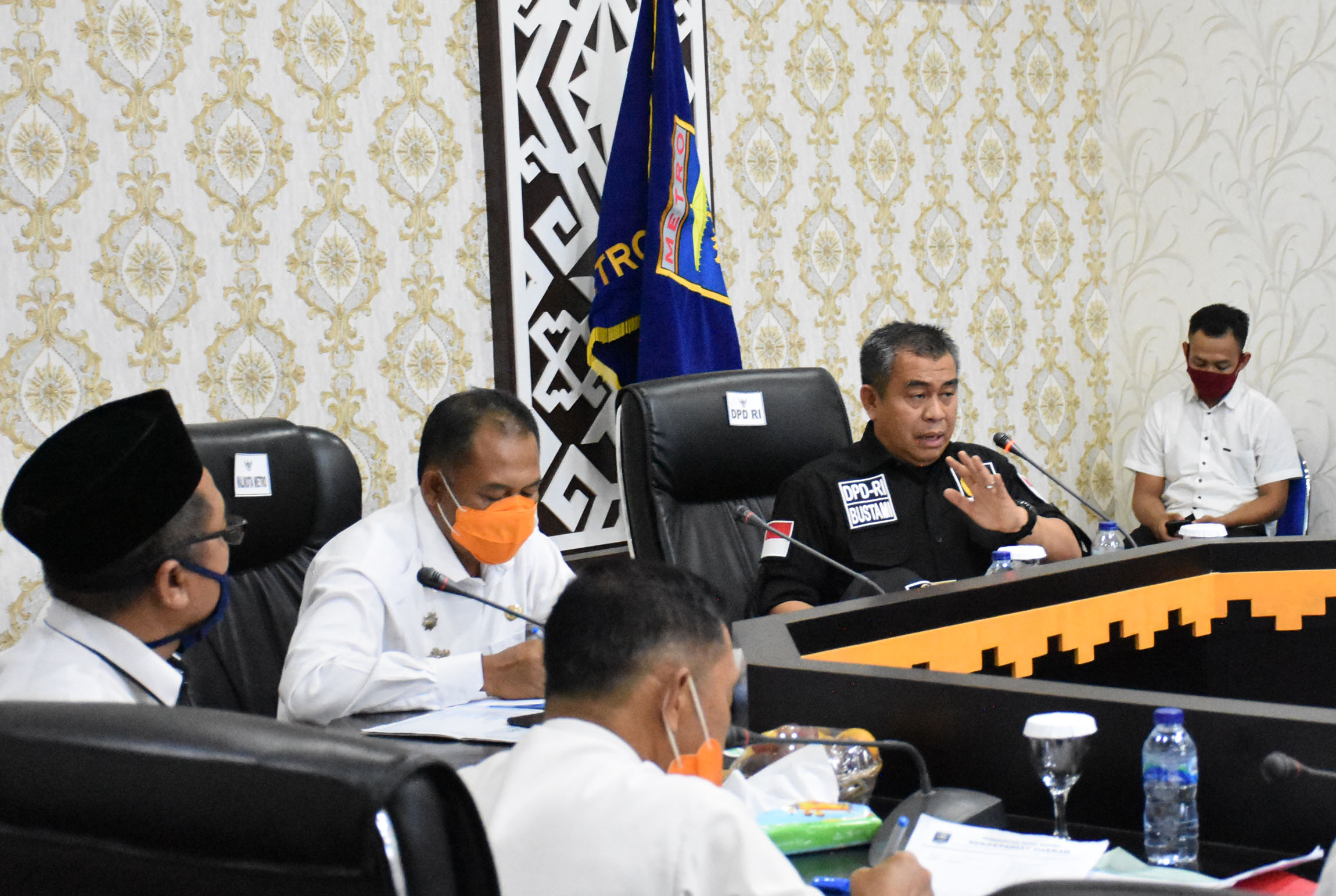 Pemerintah Kota Metro mendapat kunjungan dari DPD RI Daerah Pemilihan Provinsi Lampung, Bustami Zainudin di OR Setda Kota Metro, Rabu (05/08/2020).
