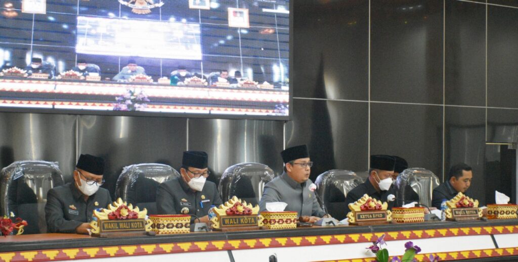 Walikota Metro menghadiri Rapat Paripurna DPRD Kota Metro tentang Penandatanganan Nota Kesepakatan bersama Pemerintah Kota Metro dan DPRD Kota Metro, tentang Kebijakan Umum Anggaran serta Prioritas dan Plafon Anggaran Sementara (KUA-PPAS) APBD Tahun Anggaran 2023, yang berlangsung di Ruang Sidang DPRD Kota Metro, Rabu(16/11/2022).