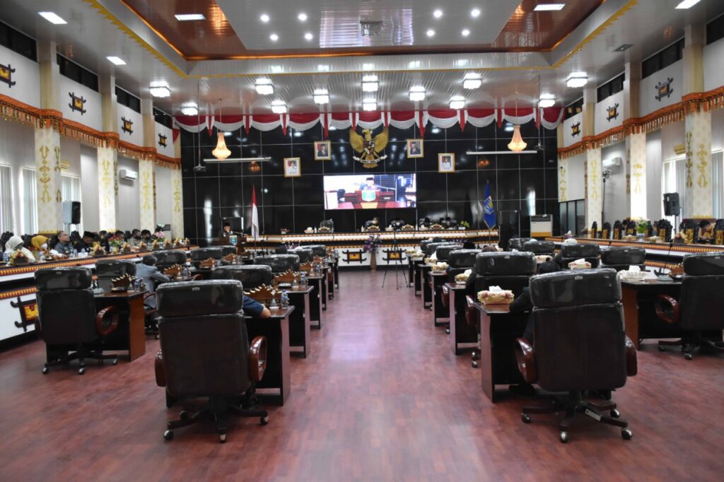 DPRD Kota Metro menggelar rapat Paripurna dengan pembahasan Pendapat Walikota Atas Penyampaian Atas 3 (Tiga) Raperda Inisiatif DPRD Kota Metro dan Tanggapan Fraksi Atas Pendapat Walikota Metro, Selasa (30/4/2022).