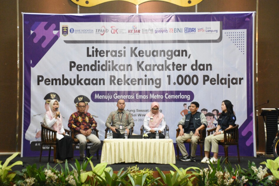 Guna peningkatan pemahaman tentang ekonomi khususnya keuangan bagi kalangan pelajar Pemerintah Kota Metro menggelar kegiatan “Literasi Keuangan, Pendidikan Karakter dan Pembukaan Rekening bagi 1.000 Pelajar”, secara simbolis di Kota Metro yang berlangsung di Gedung Sessat Agung, Kamis (08/08/2024).