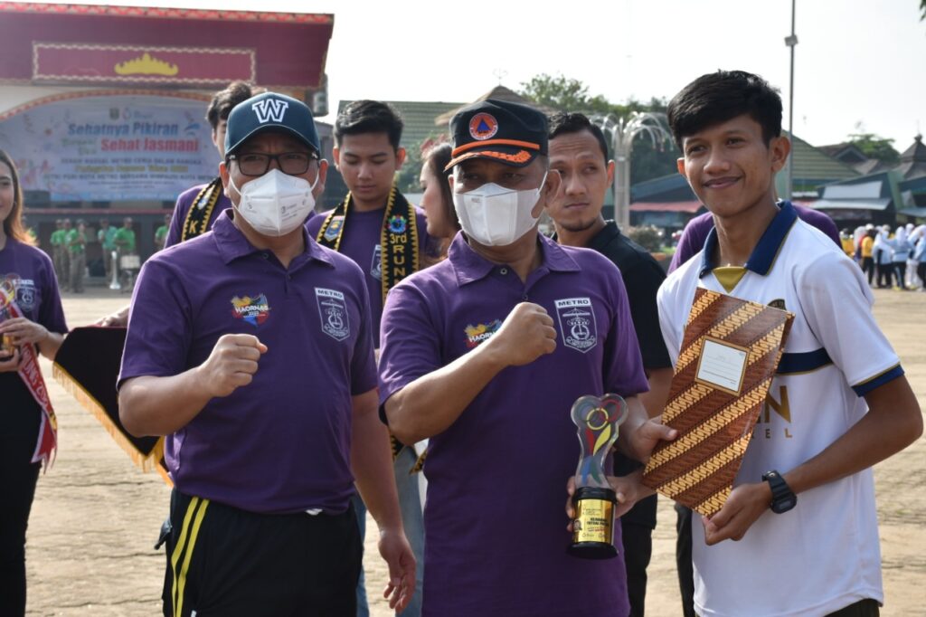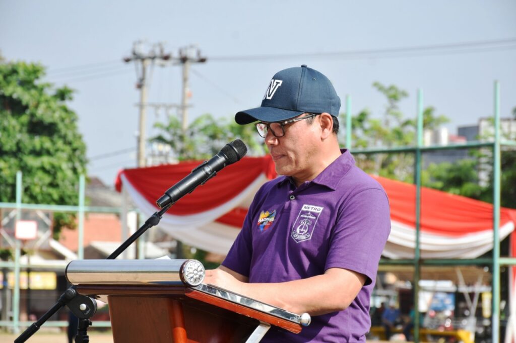 Walikota Metro Wahdi menjadi Inspektur Upacara pada Peringatan Hari Olahraga Nasional (HAORNAS) XXXIX Tahun 2022 yang berlangsung di Lapangan Samber Kota Metro, Jumat (09/09/2022).