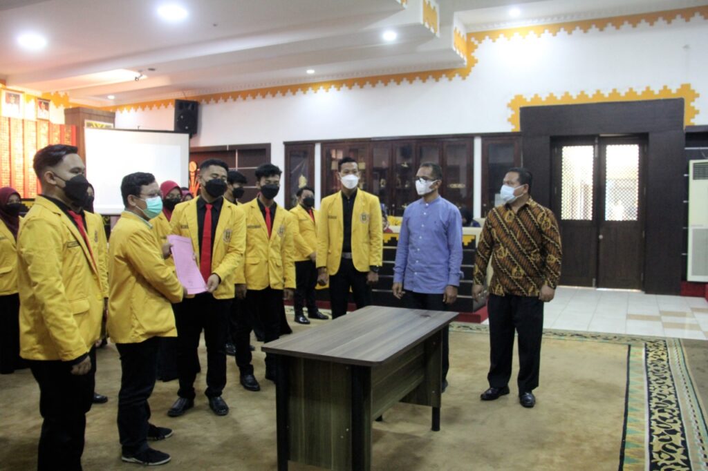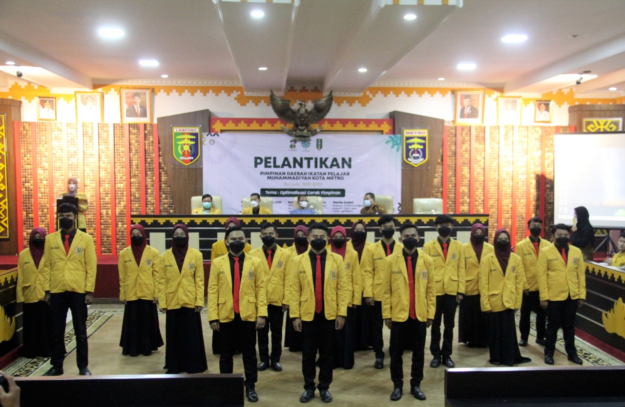 Wakil Walikota Metro yang diwakilkan Kepala Dinas Pendidikan Kota Metro, memberikan sambutan pada Pelantikan Pimpinan Daerah Ikatan Pelajar Muhammadiyah (IPM) Kota Metro Periode 2021-2023, di Aula Pemerintah Kota Metro, Minggu (12/12/2021).