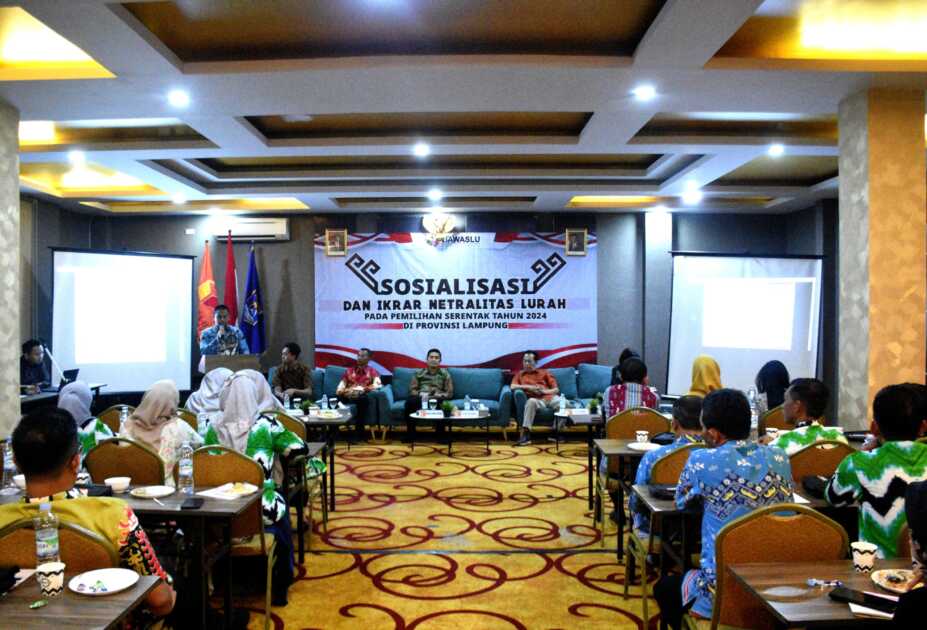 Bawaslu Kota Metro laksanakan Sosialisasi dan Ikrar Netralitas camat dan lurah dalam rangka menghadapi Pemilihan Kepala Daerah (Pilkada) Tahun 2024, yang berlokasi di Hotel Aidia Grande, Jumat (27/09/2024).
