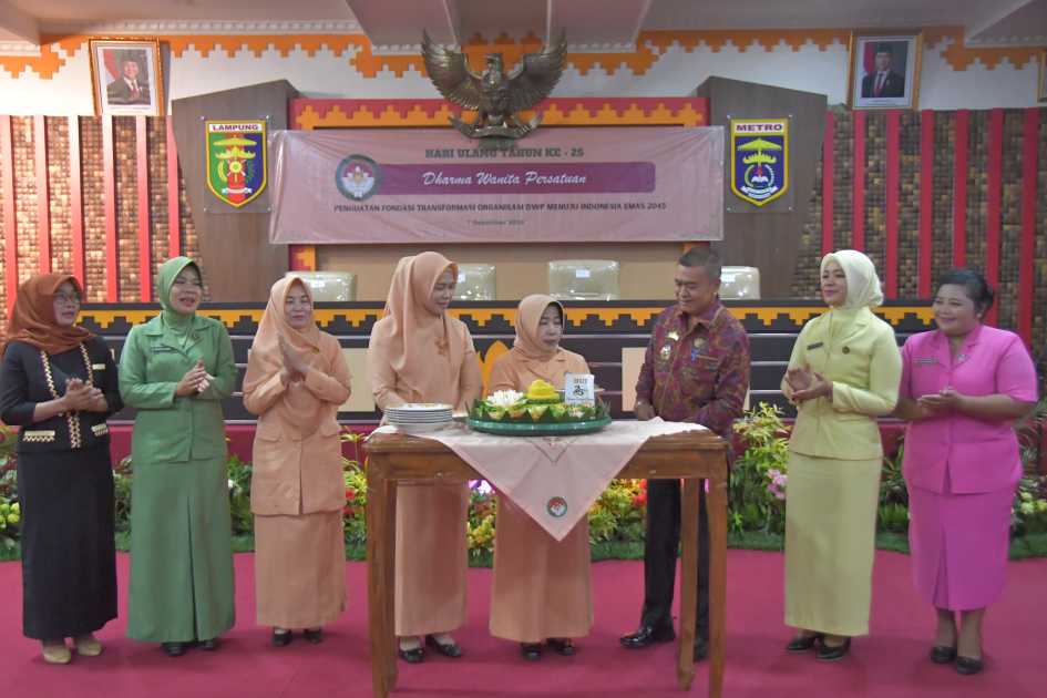 Sementara itu, Dr. Silfia Naharani sebagai Penasihat DWP Kota Metro memberikan sambutannya dalam Acara HUT Dharma Wanita Persatuan (DWP). Organisasi ini sebagai rumah dan menjadi ruang yang aman bagi seluruh anggotanya untuk saling mendukung satu sama lain, sehingga potensi masing-masing anggota dapat berkembang secara optimal.