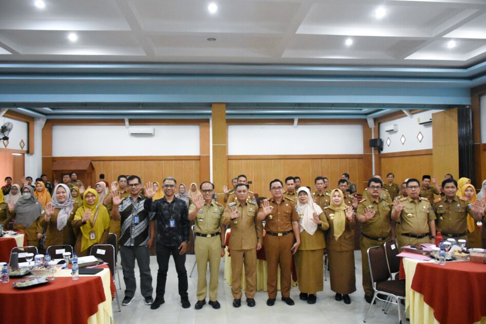 Wakil Wali Kota Metro Drs. Qomaru Zaman, M.A membuka kegiatan Penyampaian Hasil Studi Environmental Health Risk Assessment (EHRA) Kota Metro Tahun 2023 secara Hybrid (Luring dan Daring), berlangsung di Hotel Grand Skuntum, Senin (30/10/2023).