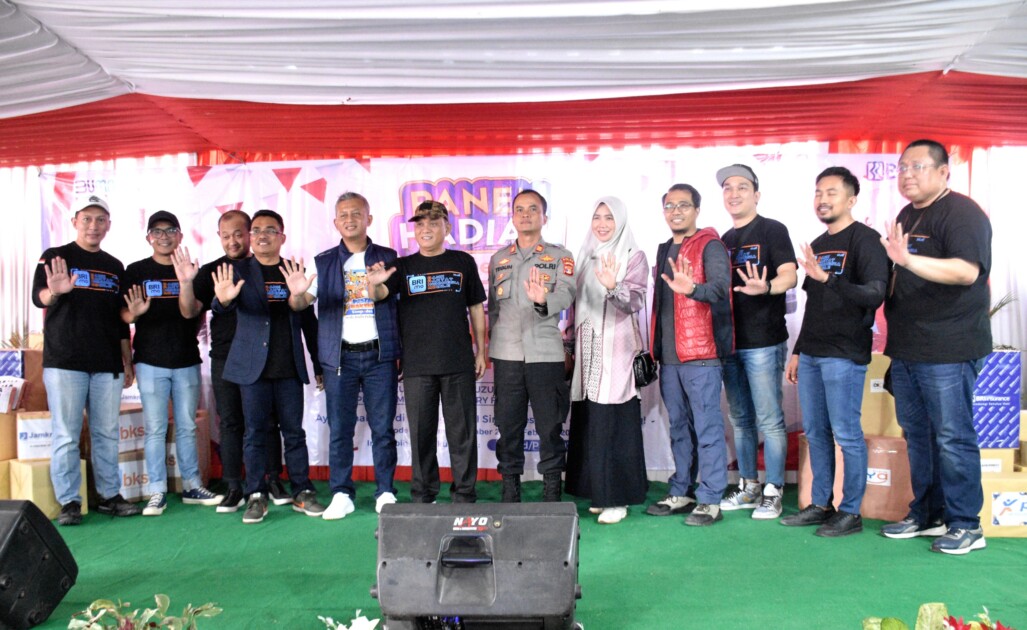 Wakil Wali Kota Metro, Qomaru Zaman didampingi Kepala Bagian Perekonomian, Yulia Candra Sari menghadiri Acara Panen Hadiah Simpedes BRI Kantor Cabang Metro, Sabtu (10/08/2024).