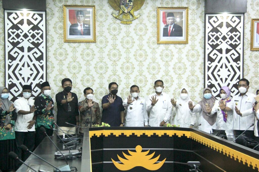 Wakil Walikota menghadiri Penandatanganan dan Serah Terima Naskah Hibah Perjanjian dan Berita Acara Serah Terima Barang Milik Negara berupa Tanah dan Bangunan dan Barang Milik Daerah yang berlangsung di OR Setda Kota Metro, Rabu (06/04/2022).