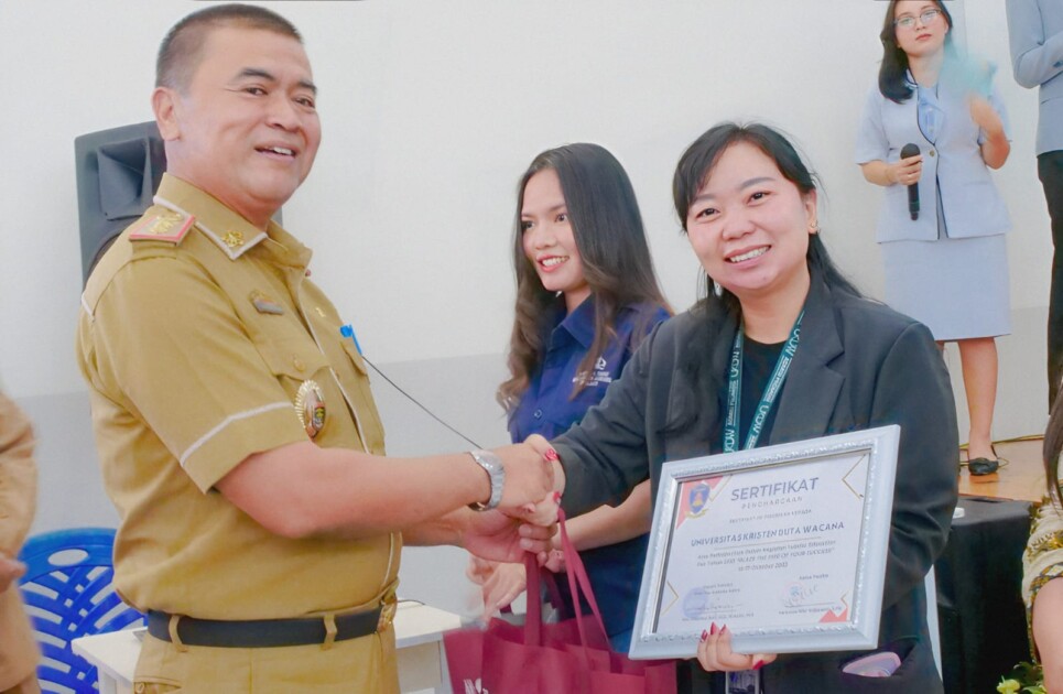 Acara diakhiri dengan pemberian sertifikat penghargaan dan pemukulan gong yang dilakukan oleh Wakil Wali Kota Metro sebagai tanda telah dibukannya acara Yos Education Fair 2023. (Yl/Vv)