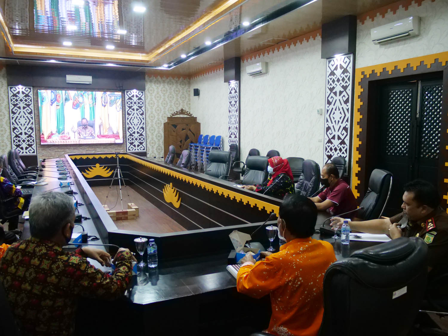 Walikota dan Wakil Walikota Metro beserta Fokorpimda menghadiri rakor secara virtual bersama Menko Polhukam Mahfud MD di OR Setda Kota Metro, Kamis (27/08/2020).