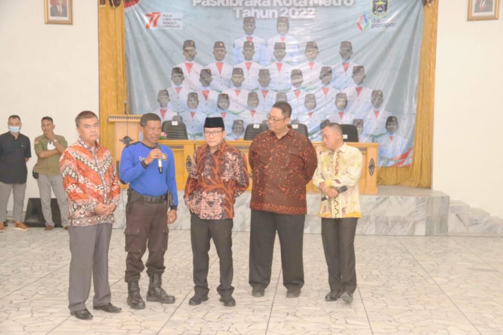 “Saya ikut merasakan kebahagiaan dan rasa bangga, terkhusus untuk para orang tua masing-masing anggota paskibraka yang telah membawa anak-anak sampai di titik ini, terimakasih juga kepada anggota Paskibraka Kota Metro karena sudah berlatih dengan baik, dan disiplin diri, jadilah anak Gemerlang, Generasi Emas Metro Cemerlang,” ucapnya.