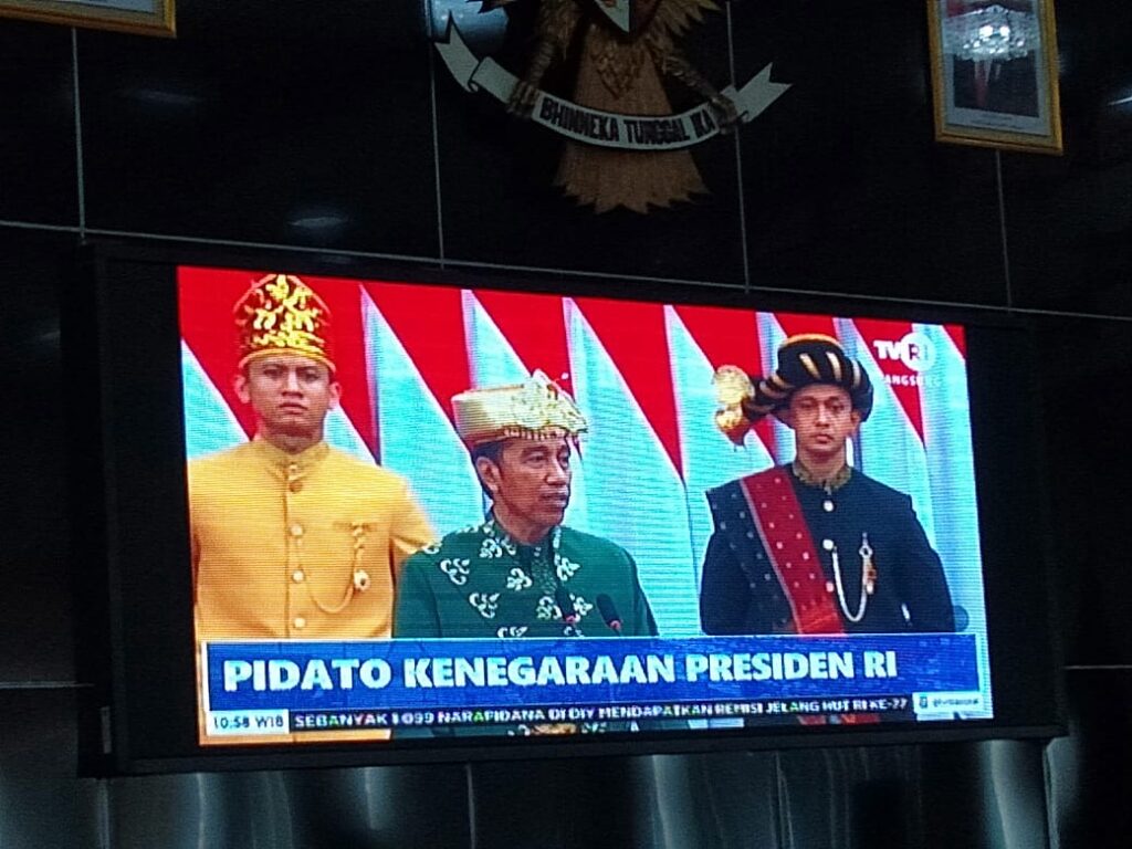 Dalam pidatonya, Presiden RI, Ir. H. Joko Widodo mengatakan, laporan kinerja lembaga-lembaga negara dan pidato kenegaraan dalam rangka Hari Ulang Tahun (HUT) ke-77 kemerdekan RI.