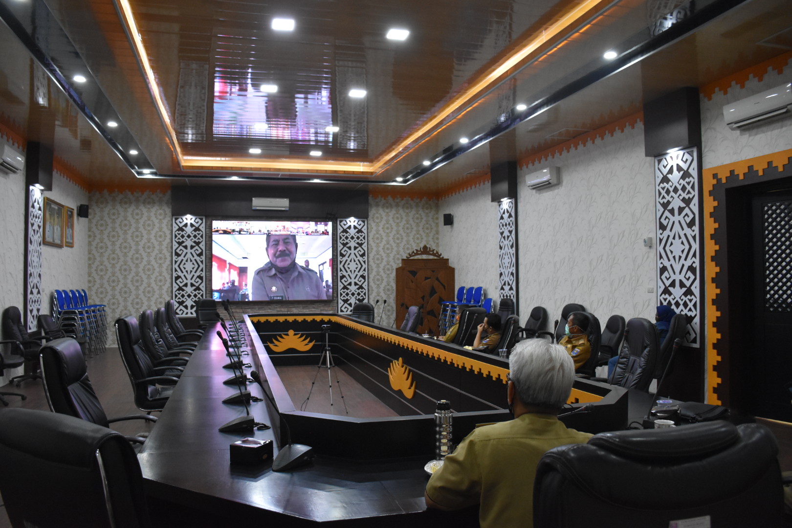 Sekretaris Daerah Kota Metro lakukan Video Conference tentang Percepatan Penyusunan Anggaran terkait Penanganan Covid-19 bersama dengan Kementerian Dalam Negeri RI, Senin (20/04/2020).