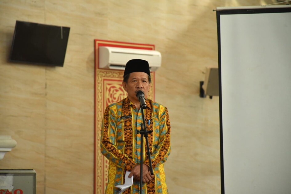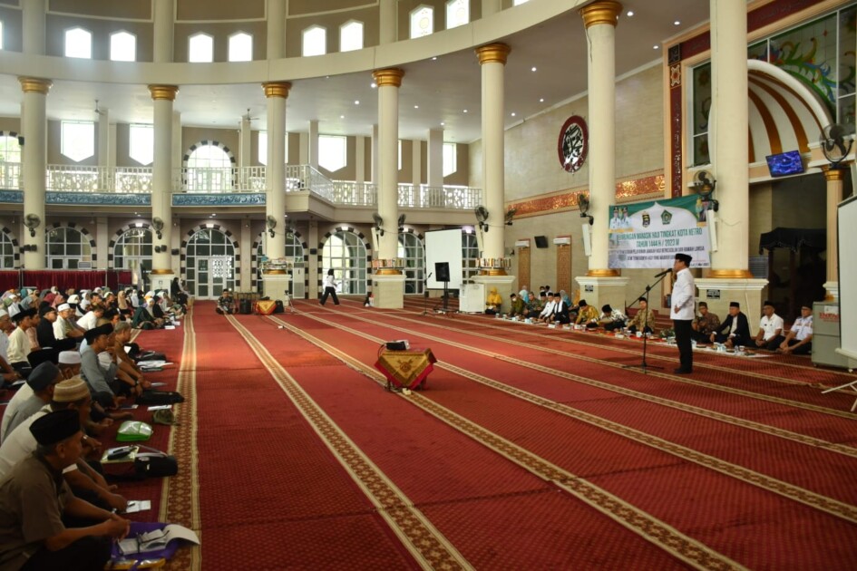Walikota Metro beserta jajaran menghadiri Pembukaan Manasik Haji Kota Metro Tahun 2023, berlangsung di Masjid Taqwa Kota Metro, Rabu 10/05/2023.