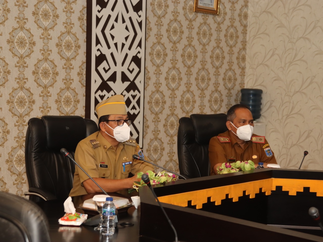 Berlangsung di OR Setda Kota Metro, Walikota Metro Wahdi mengikuti Rapat Koordinasi pencegahan tindak pidana korupsi secara virtual meeting yang dipimpin oleh Menteri Dalam Negeri, Senin (24/01/2022).