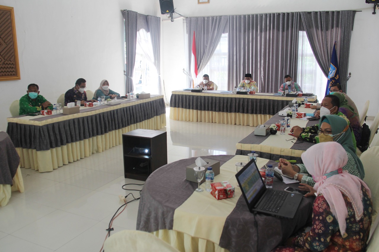 Berlangsung Guest House, Walikota Metro bersama dengan Wakil Walikota dan Sekda Kota Metro ikuti Rapat Penanggulangan Penyebaran Covid-19 di Provinsi Lampung serta guna memeperjelas Pelaksanaan PPKM Mikro di Kabupaten/Kota Secara Virtual, Jumat (06/08/2021).