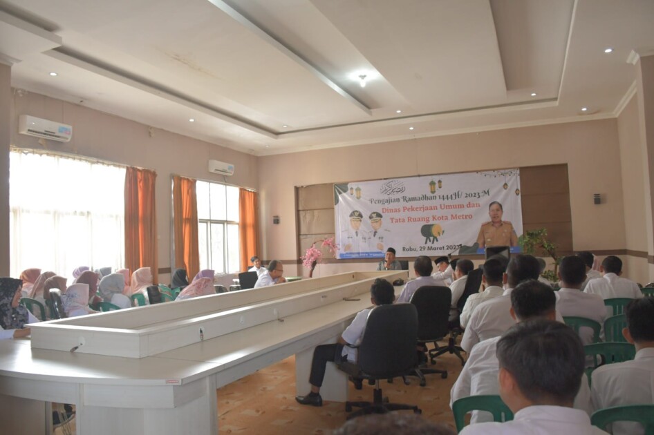 Asisten II Kota Metro Yerri Ehwan menghadiri kegiatan Amaliah Ramadhan 1444 H/2023 M yang berlangsung di Aula Dinas Pekerjaan Umum dan Tata Ruang (PUTR) Kota Metro, Rabu (29/03/2023).