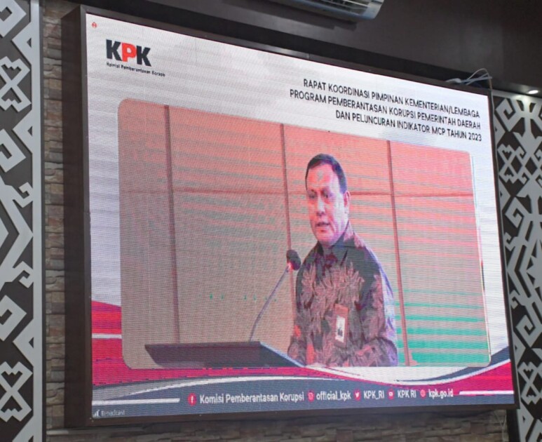 Rapat Koordinasi Pimpinan Kementerian/Lembaga Program Pemberantasan Korupsi Pemerintah Daerah dan Peluncuran Indikator MCP Tahun 2023, mengambil tema Penguatan Sinergi Pencegahan Korupsi Sektor Perizinan dan Pengadaan Barang dan Jasa Pada Pemerintah Daerah.
