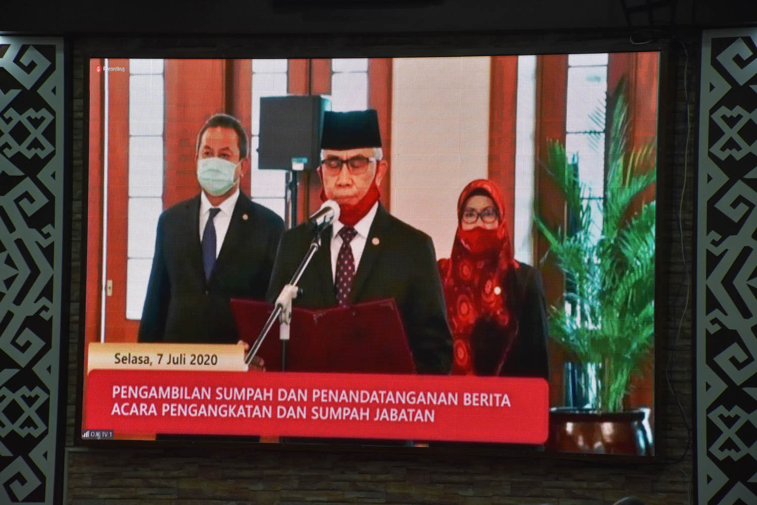 Pemerintah Kota Metro Ikuti Upacara Pelantikan dan Serah Terima Jabatan Pimpinan Satuan Kerja di lingkungan Otoritas Jasa Keuangan (OJK) Provinsi Lampung dan Provinsi di Kepulauan Riau secara virtual, Selasa (07/07/2020).