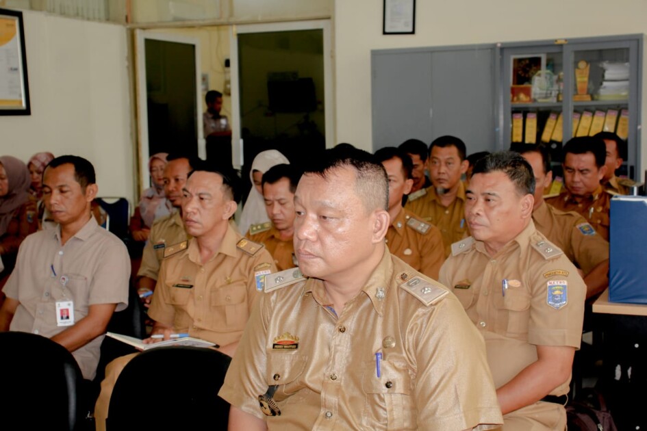 Asisten II Pemerintah Kota Metro pimpin Rapat Evaluasi Perihal Penyaluran Bantuan Pangan Beras Alokasi April 2023, yang berlangsung di Ruang Rapat Kantor Perum BULOG Kancab. Lampung Tengah, Selasa (09/05/2023).