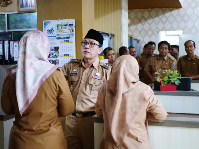 Dalam kunjungan tersebut Wahdi, meminta kepada para Aparatur Sipil Negara (ASN) untuk disiplin masuk kerja sesuai dengan peraturan cuti hari raya.