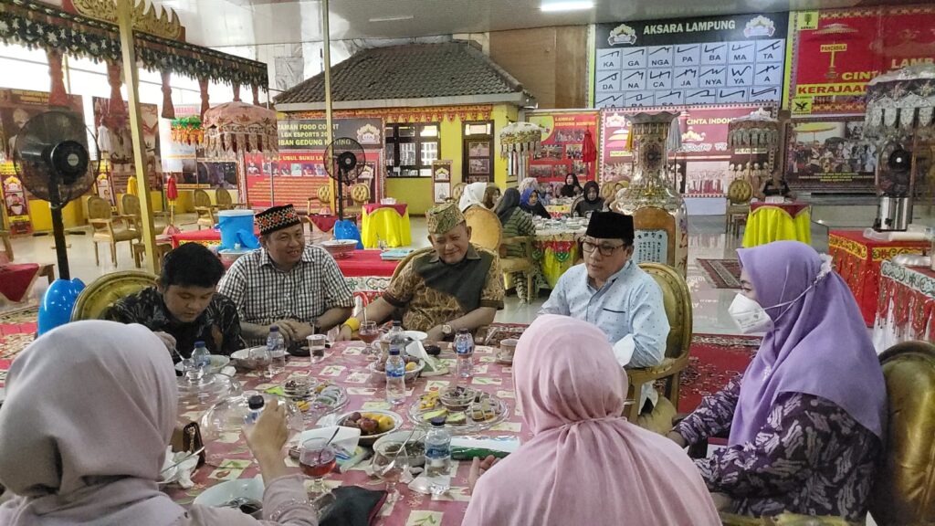Wali Kota Metro, Wahdi Siradjuddin bersama Ketua TP-PKK Silfia Naharani Wahdi melakukan kunjungan sekaligus bersilaturahmi, dengan Perdana Menteri Kesultanan Adat Lampung Paksi Skala Beghak, Ike Edwin di Lamban Gedung Kuning (LGK), Rabu (4/5/22).