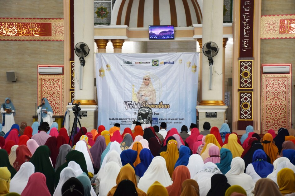 Menyambut bulan suci Ramadhan 1444 H,Badan Kontak Majelis Taklim (BKMT) Kota Metro bersama komunitas Ayo Cinta Masjid (ACM) dan Darul Tauhid menggelar Tahrib Ramadhan yang dihadiri oleh Bunda Astri Ivo sebagai pengisi tausiyah, bertempat di Masjid Agung Taqwa Metro,Kamis (16/03/2023).