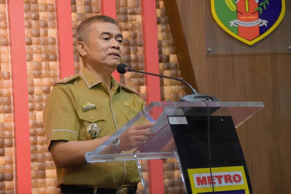 Sekretaris Daerah Kota Metro membuka Sosialisasi dan Rapat Koordinasi Jaringan Dokumentasi dan Informasi Hukum (JDIH)Tahun 2023 yang berlangsung di Aula Pemerintah Kota Metro, Senin (11/12/2023).