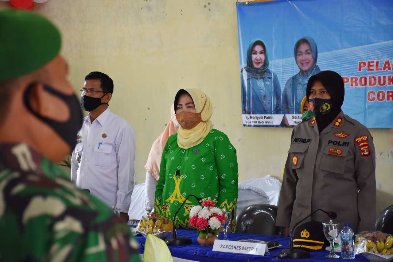 Kapolres dan Wakil Ketua PKK Kota Metro Siti Aisyah Djohan kembali Sosialisasikan Pelaksanaan Tatanan Baru di Era New Normal pada Anggota Dasawisma Kecamatan Metro Utara, Rabu (26/08/2020).