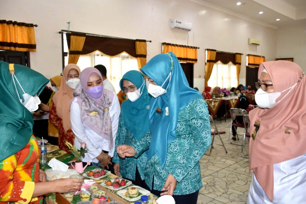 Staf Ahli Bidang l Kota Metro Silfia Naharani Wahdi menghadiri acara Lomba Kreasi PMT Balita di Posyandu Berbahan Dasar Ikan tingkat Kota Metro Tahun 2022, berlangsung di LEC Kartika Metro, Kamis (14/07/2022).