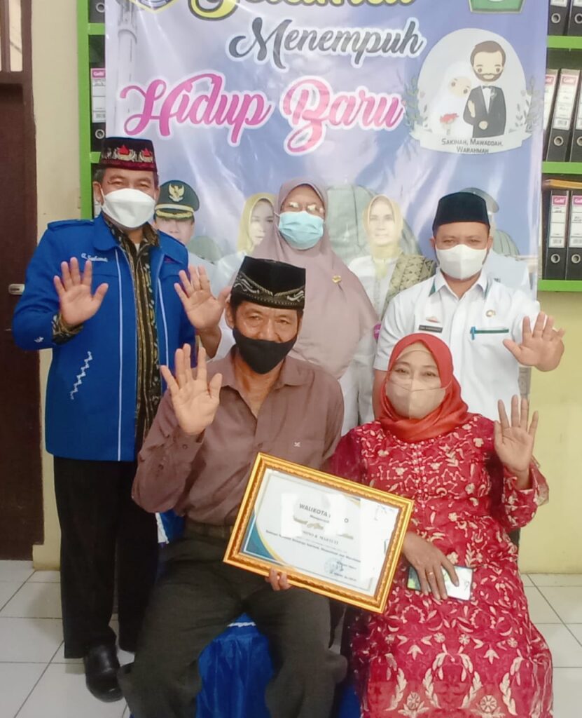 Staf Ahli Walikota Metro Bidang Ill Juni Kuswati menghadiri Fasilitasi Nikah di Balai Nikah Metro Timur. Akad Nikah yang berlangsung tersebut antara Samino dan Martuti, Kamis (24/03/2022). Diketahui Fasilitasi Nikah di balai nikah merupakan salah satu dari lima program 100 Hari Penanggulangan Covid-19.
