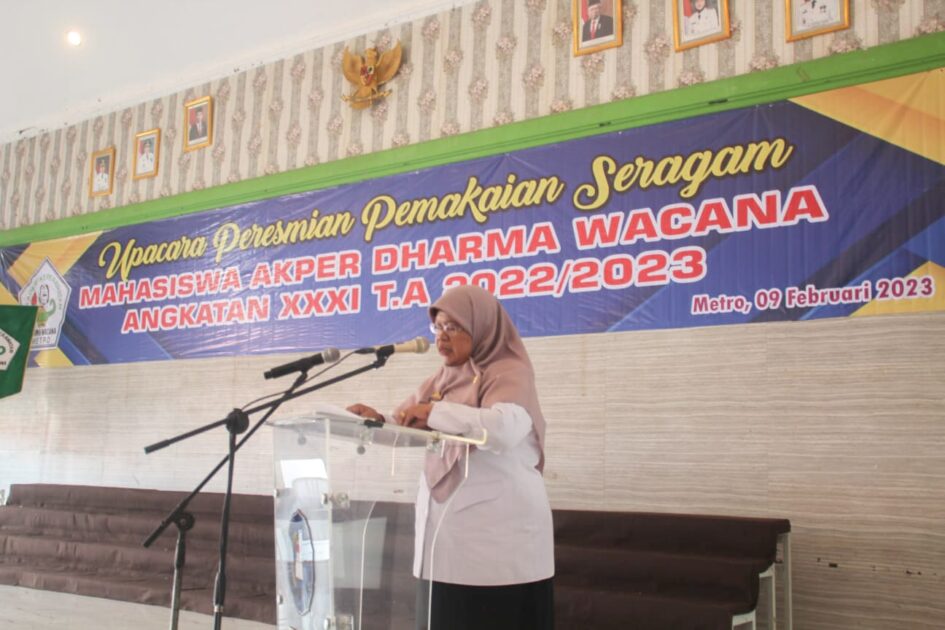 Staff Ahli Walikota Bidang III, Juni Kuswati, mengungkapkan bahwa Peresmian Penggunaan Pakaian Seragam termasuk Pemasangan Cap dan Lencana kepada Mahasiswa Akademi Keperawatan Dharma Wacana Metro, merupakan bagian dari pemantapan identitas profesi, serta salah satu upaya untuk mendukung perubahan sikap, perilaku, serta kedisiplinan mahasiswa melalui pemakaian seragam resmi.
