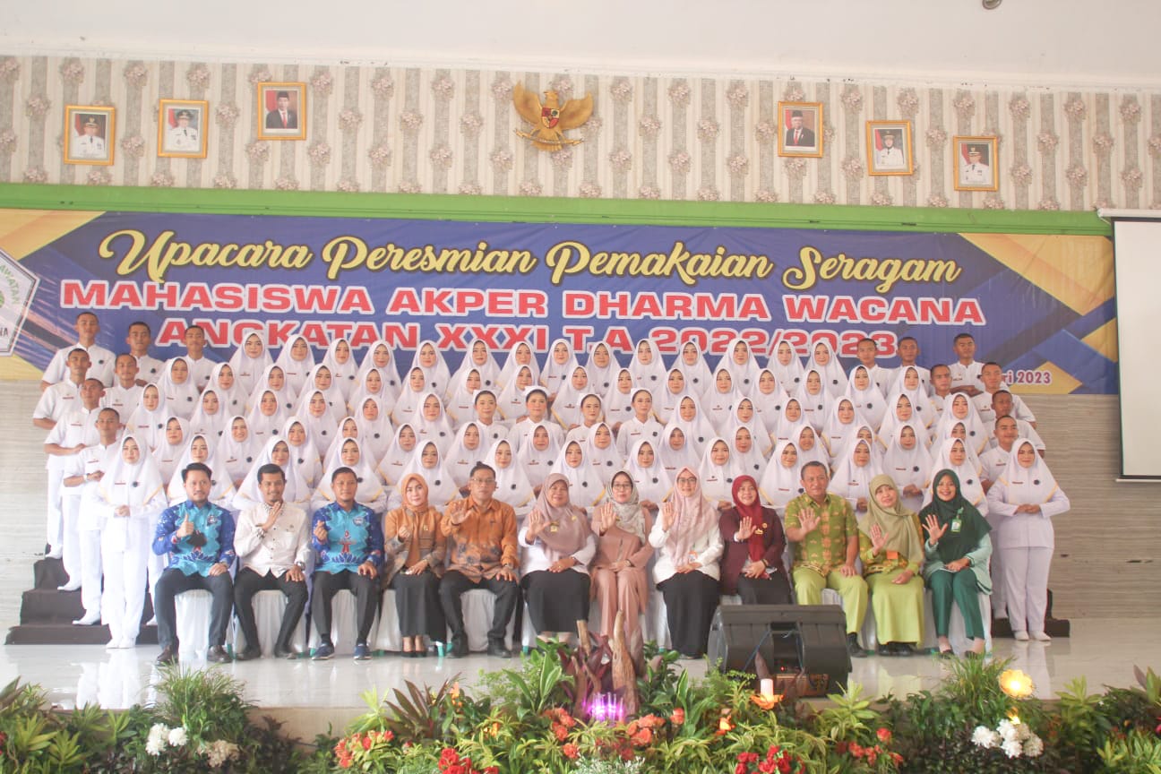 Sementara itu, Direktur Akper Dharma Wacana, Ludiana melaporkan tujuan peresmian Penggunaan Pakaian Seragam kepada Mahasiswa Akademi Keperawatan Dharma Wacana Metro angkatan XXXI T.A 2022/2023 yang diikuti oleh 87 mahasiswa, karena mahasiswa di anggap sudah siap untuk melakukan praktek dilapangan baik di Rumah Sakit, Puskesmas , Praktek Bidan Swasta maupun di Panti Jompo.