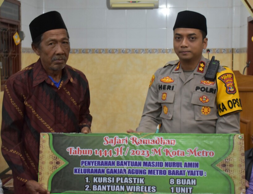 Pada kesempatan ini, Pemerintah Kota Metro memberikan bantuan kepada Masjid Nurul Amin berupa kursi plastik 8 buah, wireless 1 unit.