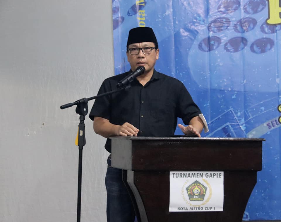 Walikota Metro membuka Turnamen Gaple PWI Kota Metro Cup I, yang berlangsung di Halaman Sekertariat PWI Kota Metro, Sabtu (27/08/2022).