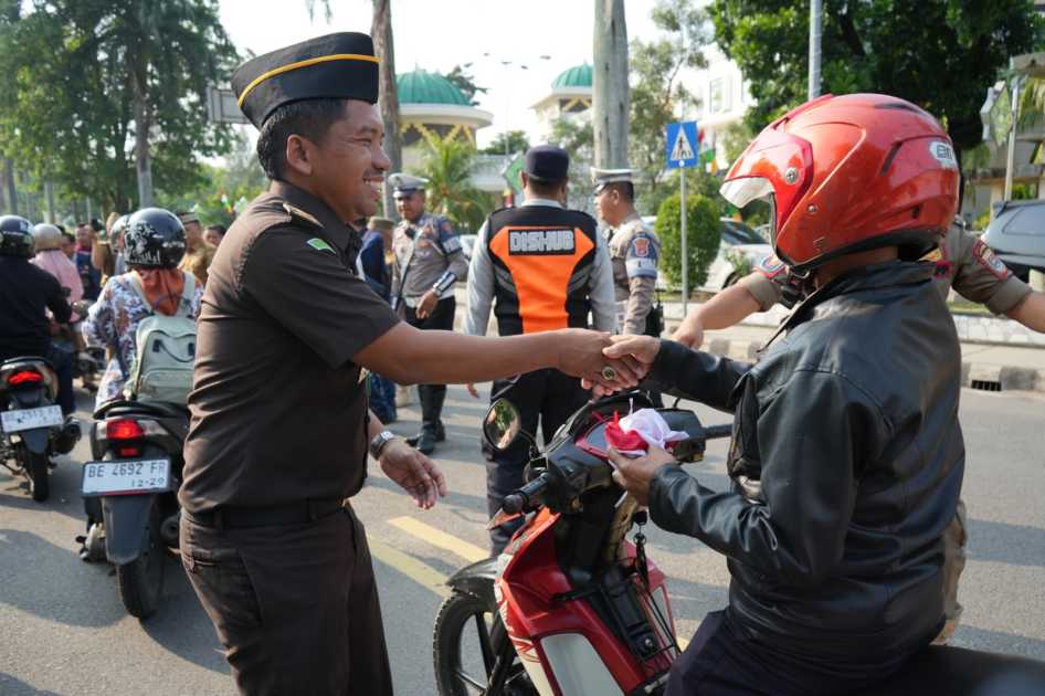 Dengan diiringi lagu-lagu perjuangan, Wali Kota Metro berserta Jajaran langsung menyerahkan bendera kepada pengendara yang melintas di kawasan tersebut. Tak hanya pengendara motor dan mobil, pejalan kaki juga turut mendapat bagian sebagai bentuk penyebaran semangat kemerdekaan.