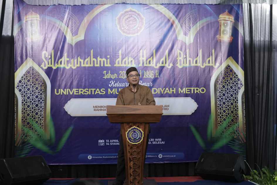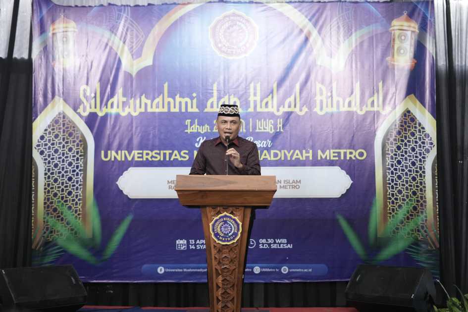 Universitas Muhammadiyah Metro menggelar kegiatan Halal Bihalal yang penuh kehangatan dan kekeluargaan, dihadiri oleh civitas akademika, pimpinan Muhammadiyah dan Aisyiyah, serta sejumlah tokoh pemerintahan, termasuk Wali Kota dan Wakil Wali Kota Metro.