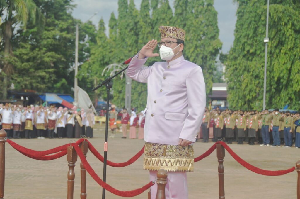 Walikota Metro Wahdi Siradjuddin, memimpin upacara dalam Rangka Peringatan Hari Jadi Kota Metro ke 85 Tahun 2022, di laksanakan Samber Park, Kamis (09/06/2022).