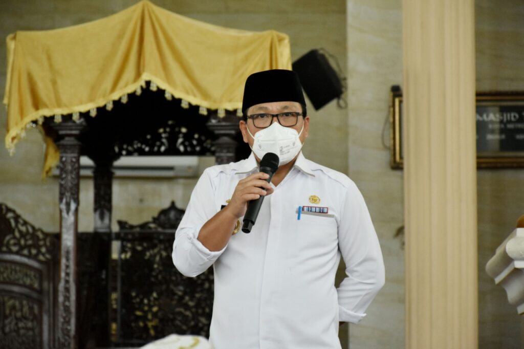 Walikota Metro Wahdi Siradjuddin, mengikuti solat zuhur berjamaah di Masjid Taqwa Kota Metro. Solat zuhur ini dilakukan dalam rangka menyambut bulan suci ramadhan, Kamis 31/03/2022.