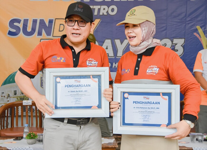 Kegiatan diakhiri dengan Pemberian Penghargaan dari Sunday funday kepada dr. H. Wahdi Siradjuddin, Sp.OG., M.H. dan dr. Silfia Naharani, Sp. KKLP, MM sebagai Tokoh Inovatif Peduli Komunitas 2023 yang membersamai, membimbing, memfasilitasi gagasan, regulator, pengawas pemberdayaan dan kreativitas komunitas. (Yl)