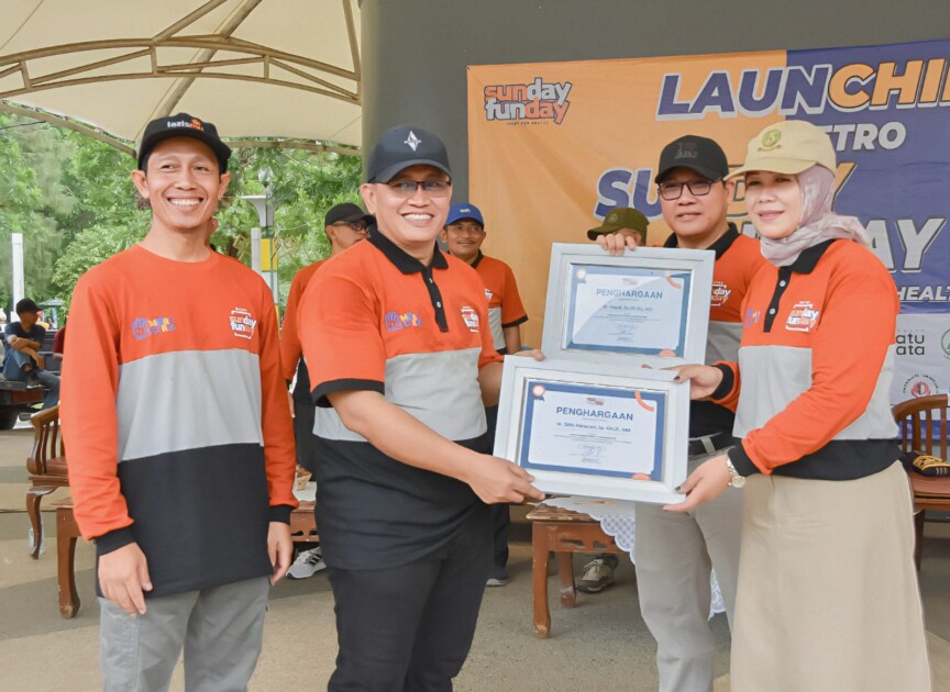 Wali Kota Metro melaunching Metro Sunday Funday Sport Fun Healthy yang berlangsung di Halaman Masjid Taqwa Kota Metro, Minggu (10/12/2023).