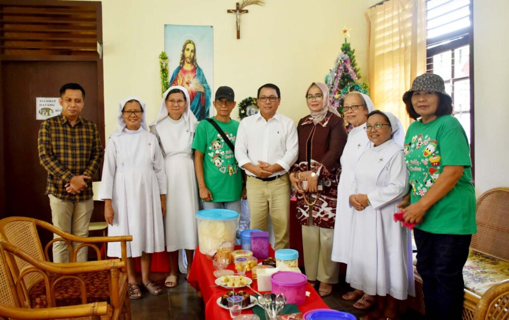 Walikota Metro dan Wakil Walikota Metro beserta Jajaran mengunjungi Gereja Hati Kudus Kota Metro, sebagai apresiasi perayaan Natal yang Pohon Natal menggunakan Limbah Sampah Rumah Tangga pada Selasa (26/12/2023).