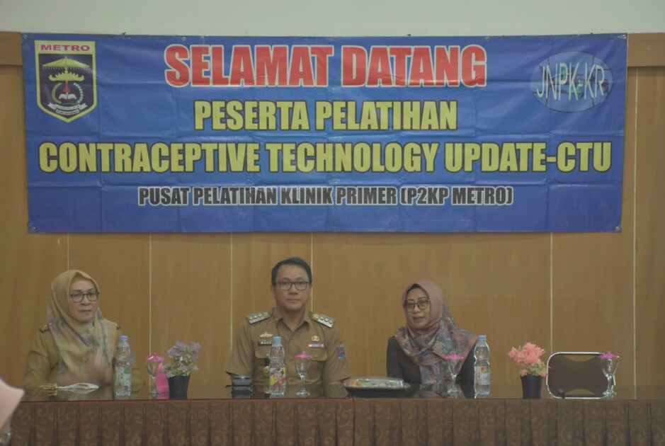 Walikota Metro dr. Wahdi Siradjuddin, Sp. OG(K),M.H membuka Pelatihan CONTRACEPTION TECHNOLOGY UPDATE (CTU) Pusat Pelatihan Klinik Primer (P2KP) Kota Metro tahun 2023, yang terselenggara di Ballroom Hotel Grand Sekuntum, Kota Metro, Selasa (23/05/2023).