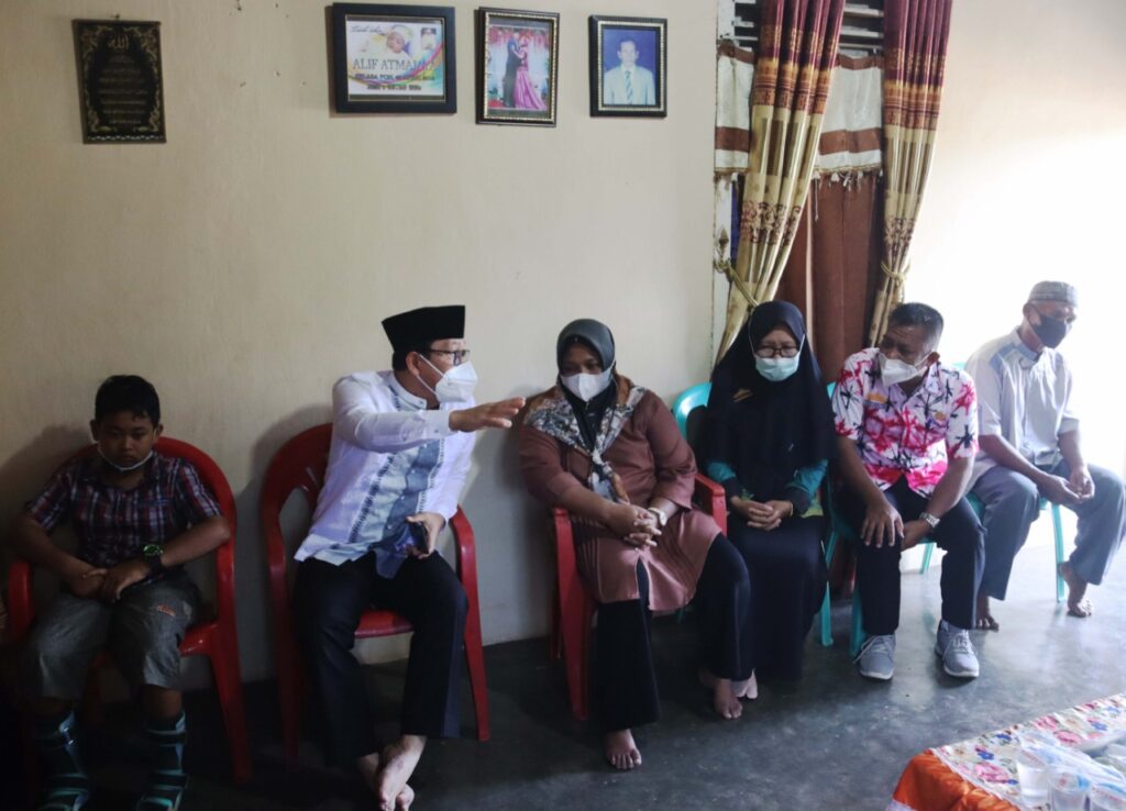 Walikota Metro Wahdi melakukan kunjungan kesehatan sekaligus memberikan santunan kepada saudara Febian Ramadan penderita kanker, di Jl. Budi Utomo, Kelurahan Rejomulyo, Metro Selatan, Jumat 29/7/2022.