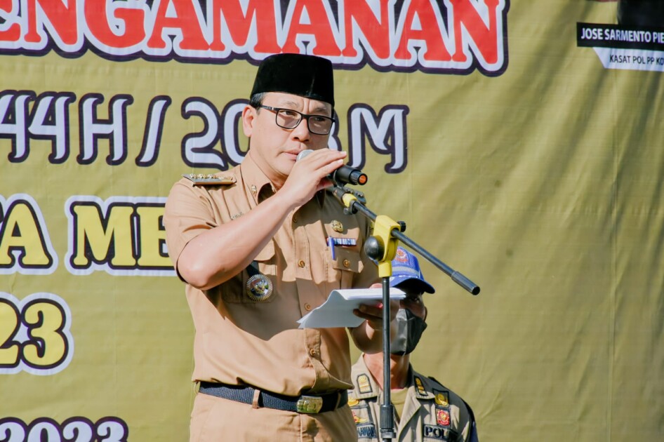 Walikota Metro menjadi Pembina Apel Gabungan dalam Rangka Pengamanan Hari Raya Idul Fitri 1444H dan Penyerahan SK serta Pembagian Insentif Satlimnas Triwulan I Tahun 2023, yang berlangsung di Kantor Satpol PP Kota Metro, Selasa (18/04/2023).