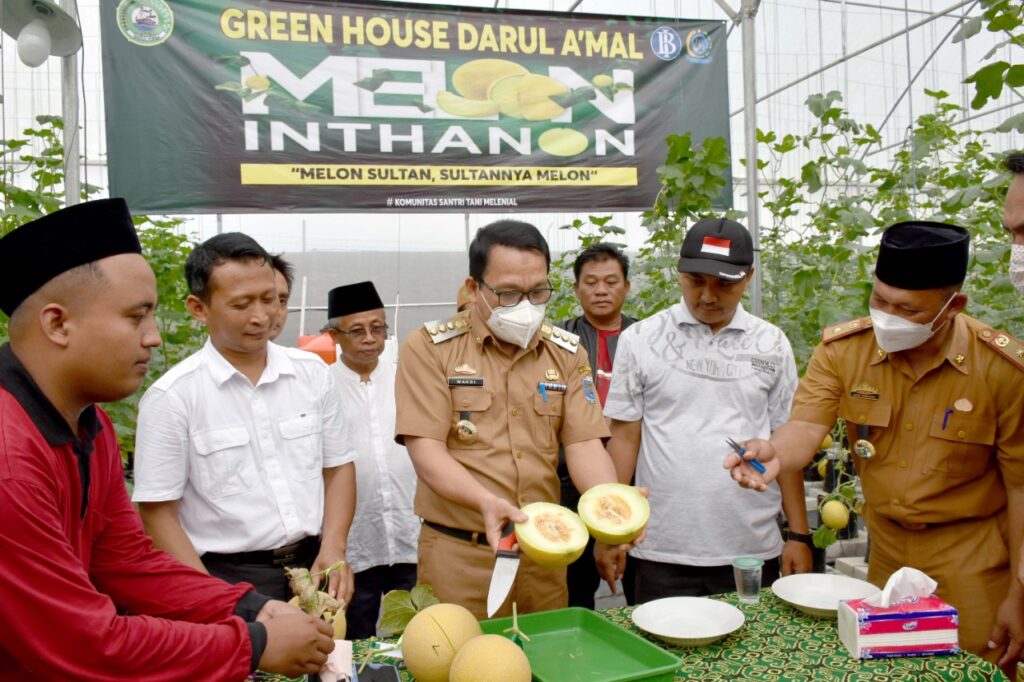 Walikota Metro Wahdi Siradjuddin secara langsung melaksanakan panen perdana di Green House Darul A’mal Melon “Melon Sultan, Sultannya Melon” oleh komunitas Santri Tani Milenial. Acara panen melon ini berlangsung di Green House Darul A’mal Metro, Selasa 26/7/2022.